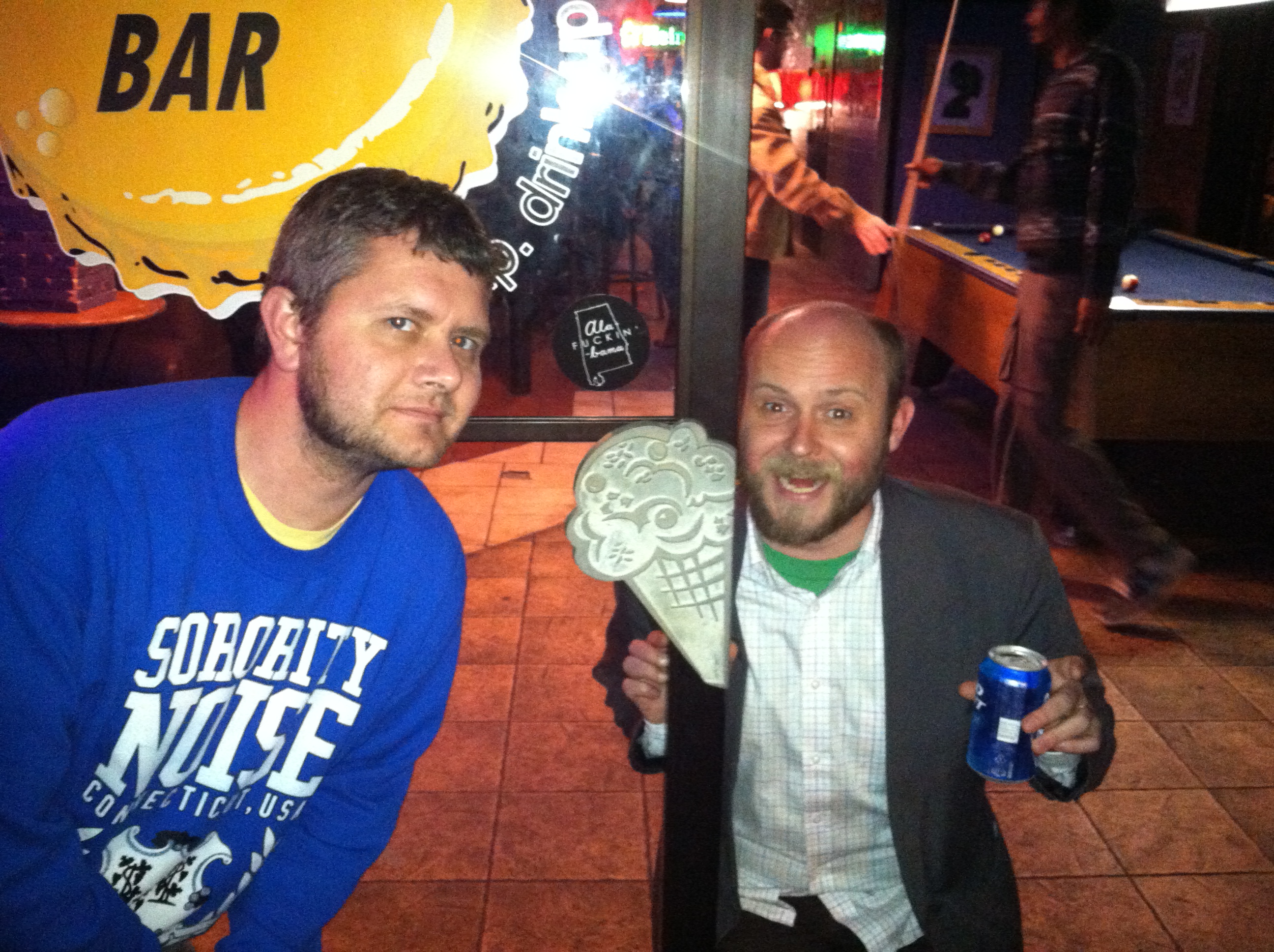 Ryan took me down to Serda’s coffee house the morning after the show, where we bumped into a whole crew of Mobile luminaries. We were standing outside chatting when I looked up and I saw the official Moon Pie sign hanging off a nearby building. I had reached Valhalla.