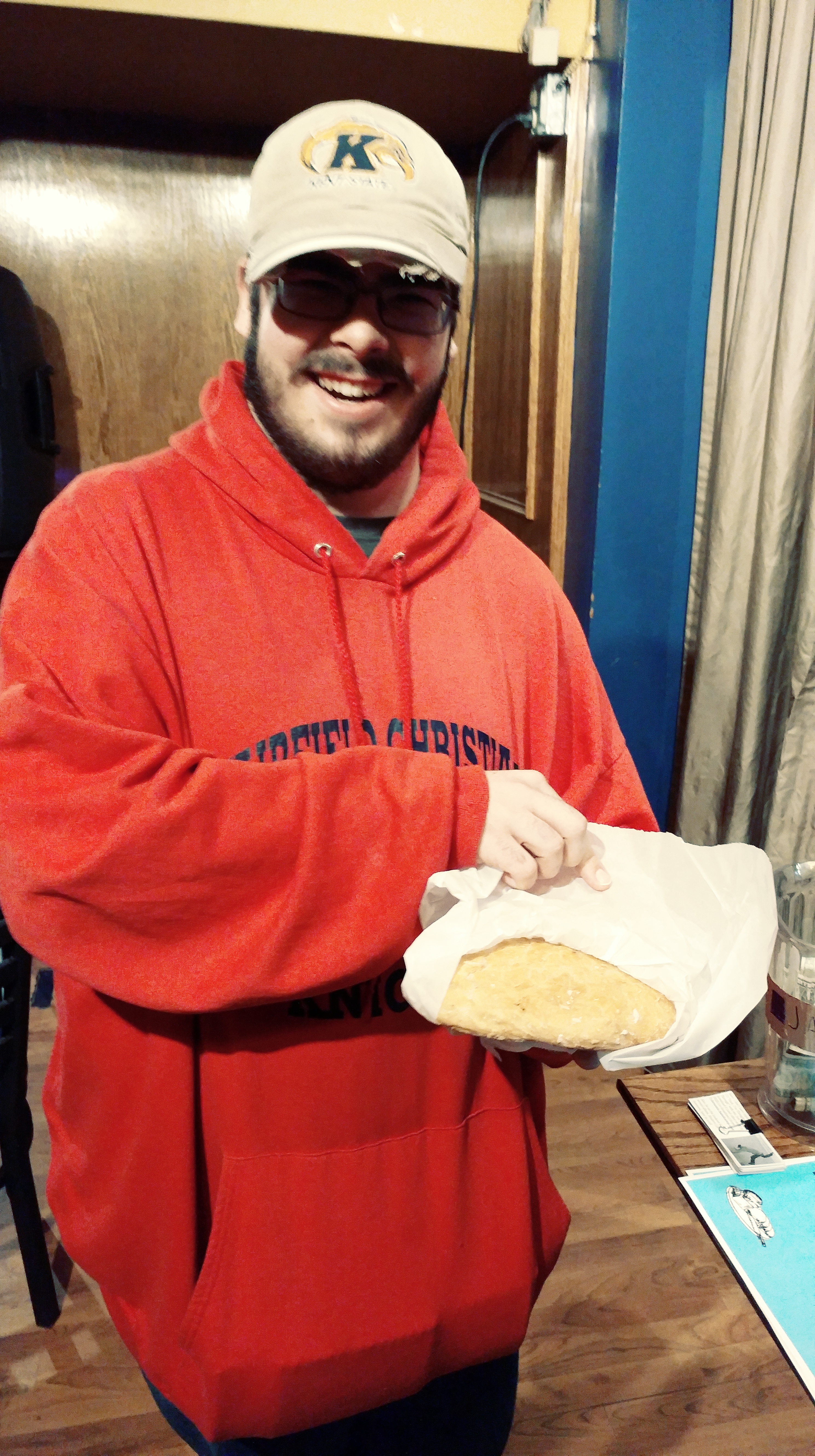 0312182336_Film3 Published March 18, 2018 at 2976 × 5312 in Sonic-Simon 2018: Flour to the People (Tour Recap) ← Previous Next → Man in oversized red hoodie who bought a loaf of bread!