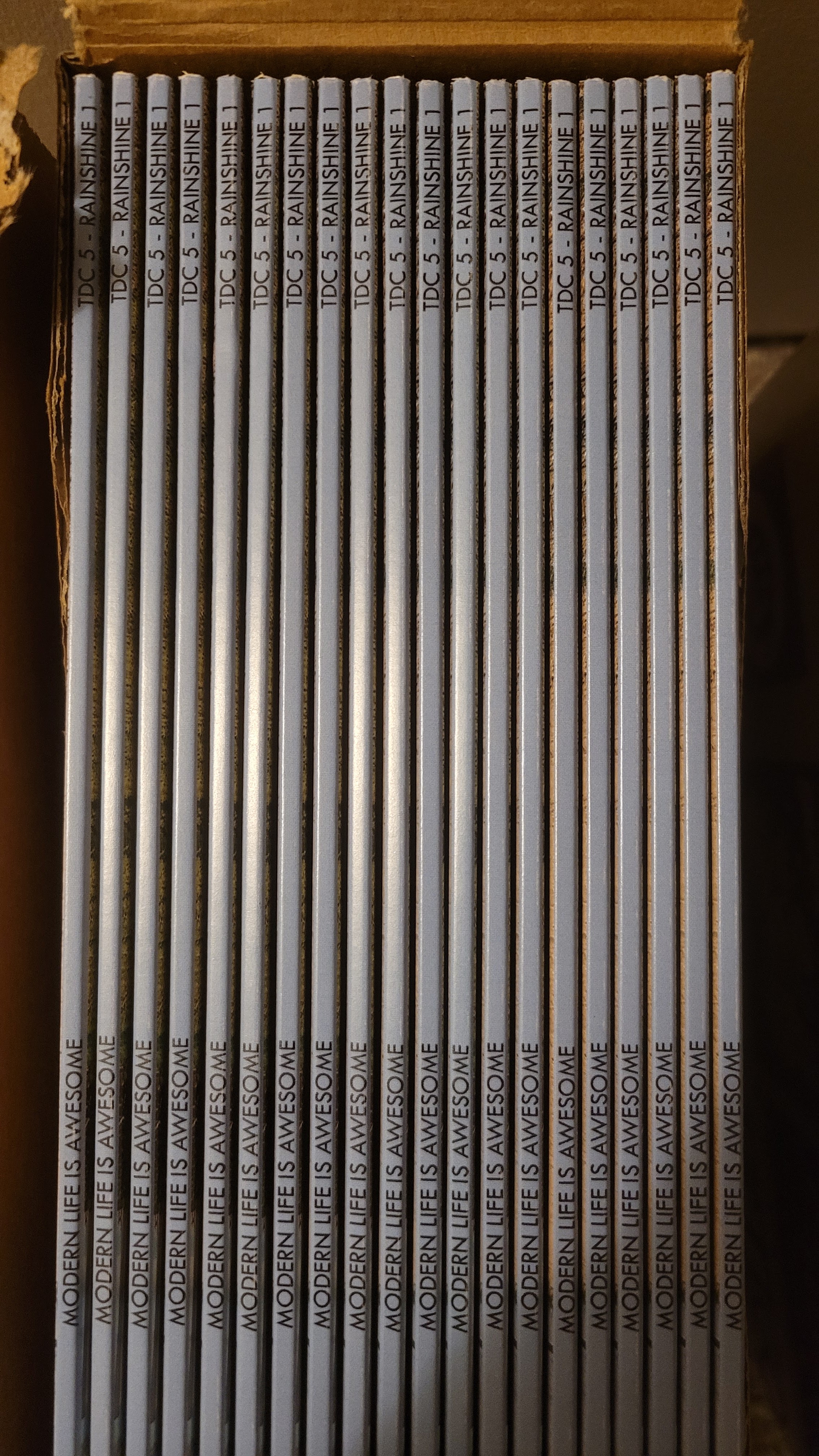 I just unearthed the last 30 or so copies of my 2018 album Modern Life is Awesome, and despite the best efforts of DHL when they were originally delivered, the jackets are in Mint Condition.